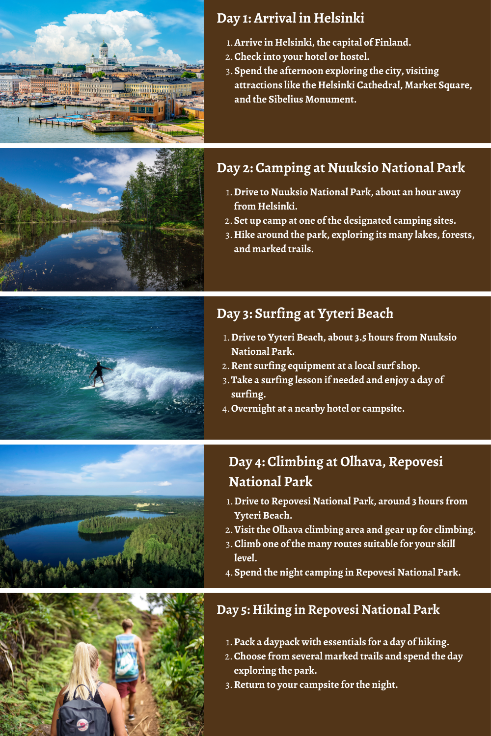 Finlandia - Aventuras árticas y encantos nórdicos: un itinerario de 10 días para acampar, surfear, escalar, hacer senderismo y tirolinas