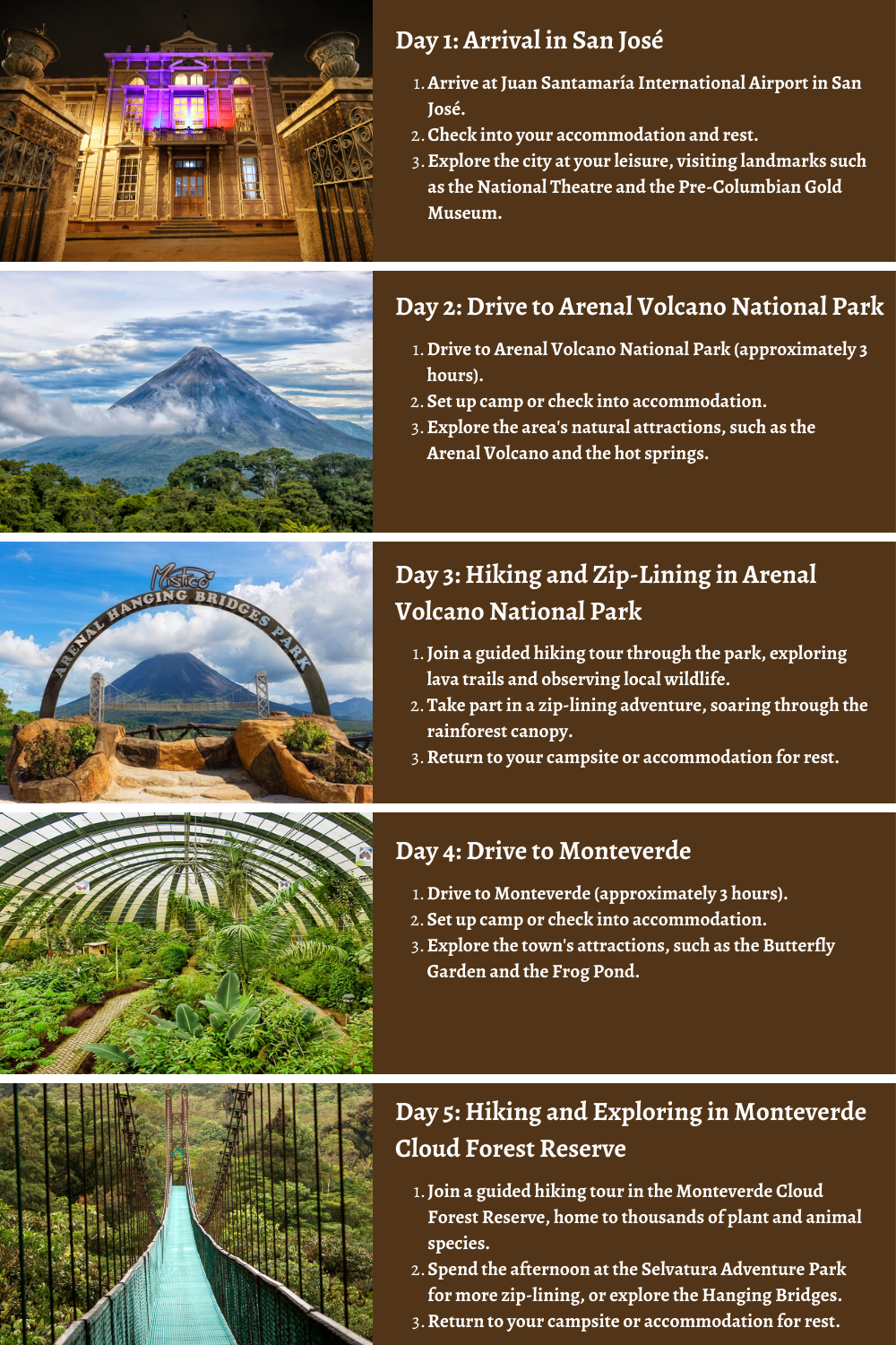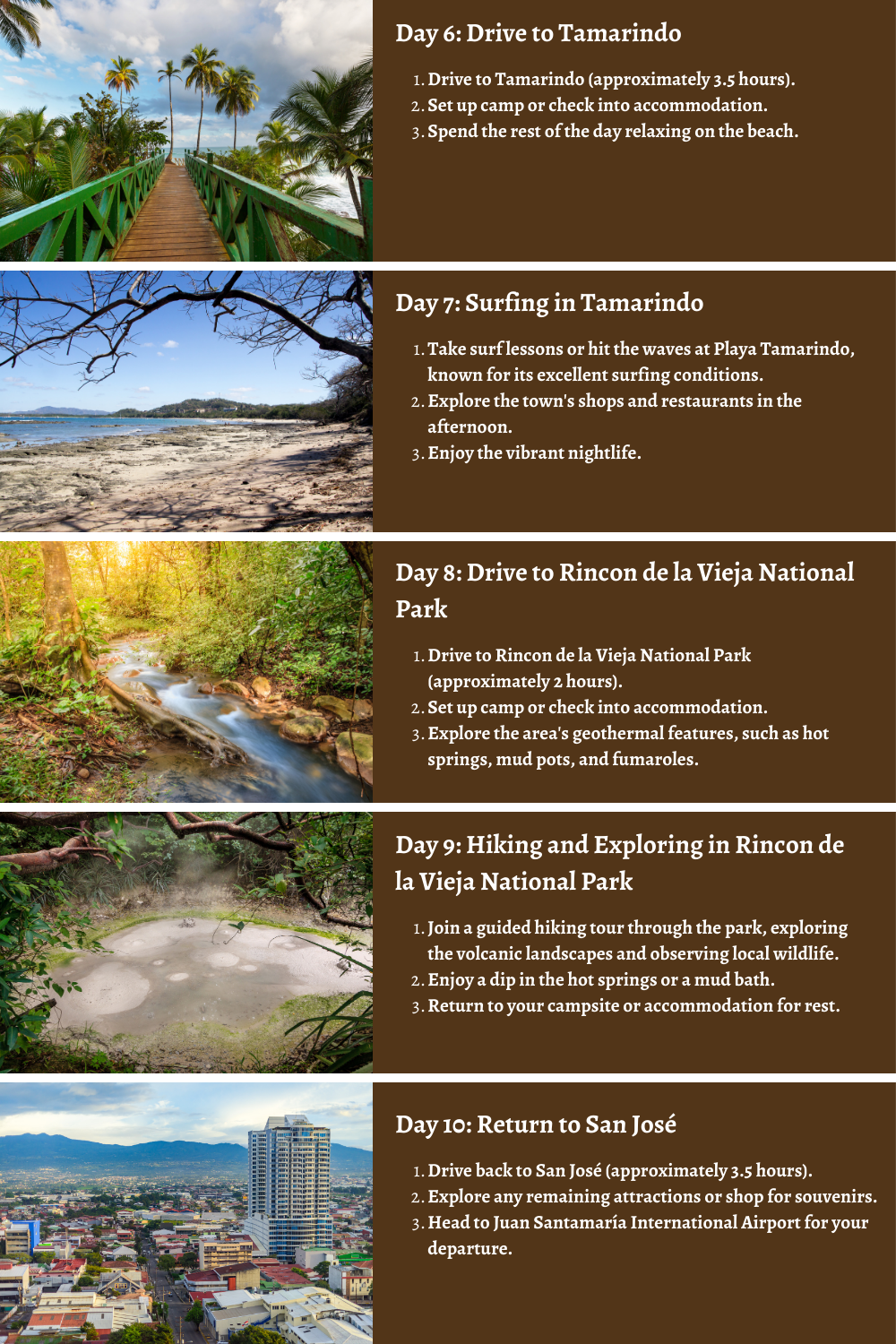 Embark on an exhilarating 10-day adventure in Costa Rica! Our itinerary takes you camping, surfing, climbing, hiking, and zip-lining, giving you the most memorable and thrilling vacation. Experience the diverse landscape and capture your favorite moments to take home with you.