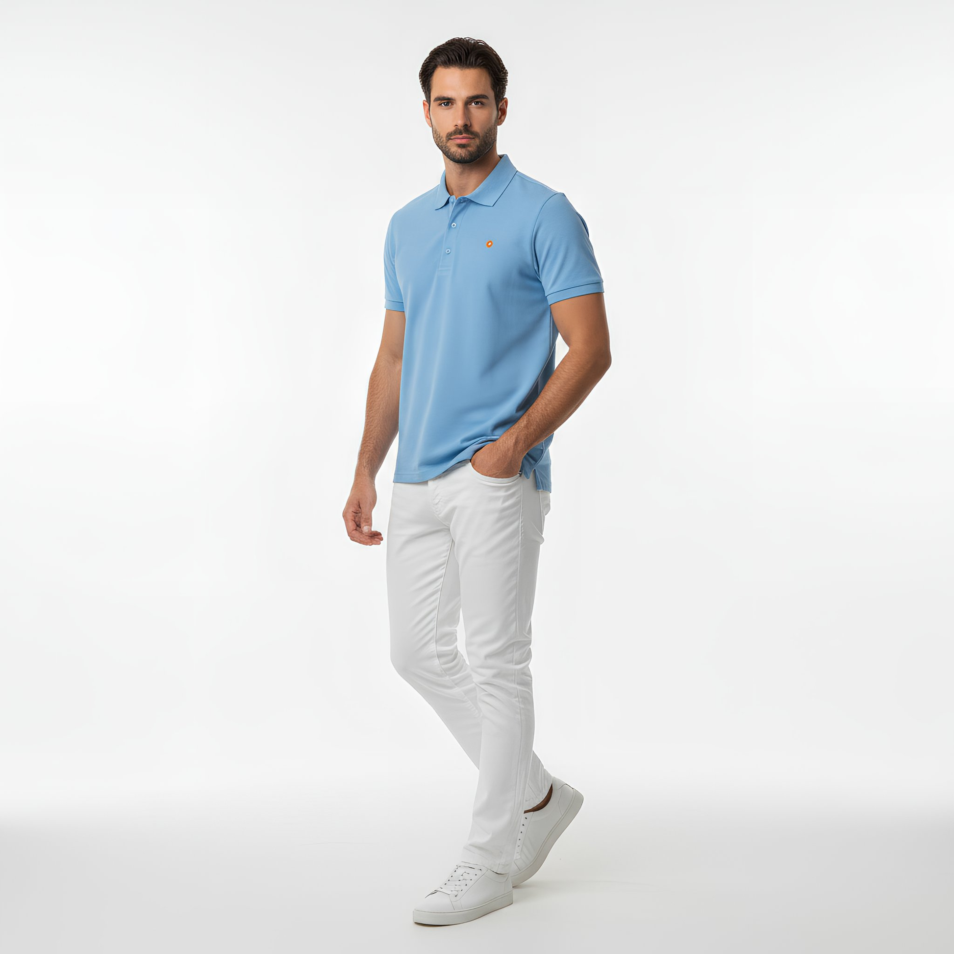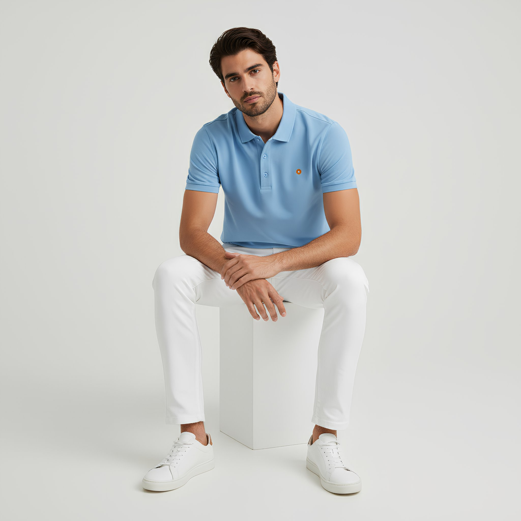 - Contoured Welt Collar & Cuffs: Structured details that elevate the polo’s clean, refined look.