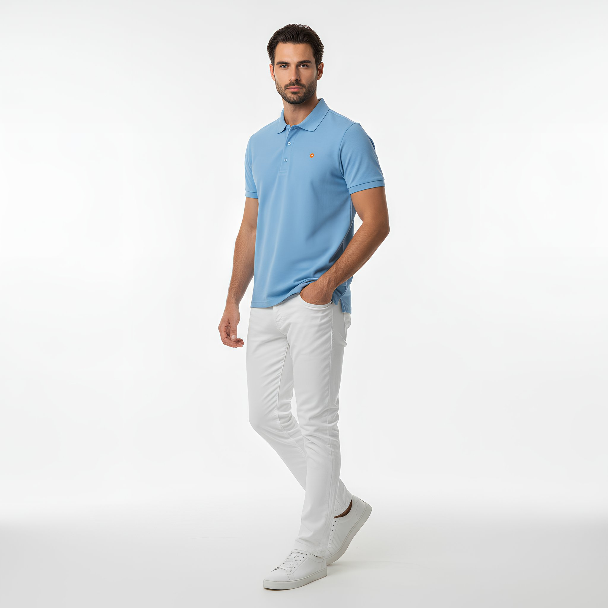 This stylish polo was designed in California for the modern man who is always ready to show off his fun side. The slim fit style looks great on any body type, while the light blue hue adds an unmistakable bit of pizzazz. Refresh your wardrobe today with Polo by NO&YO!