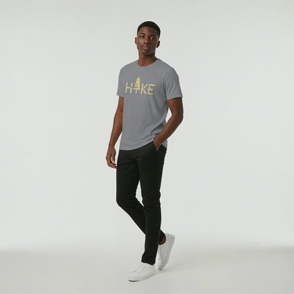 Embark on your next trek with the Top Outdoor HIKE Men’s Graphic Tee, designed with the avid hiker in mind. This tee in green charcoal mirrors the natural hues of the forest, enhancing your connection with nature while providing the comfort and lightness needed for a long day on the trails. The Top Outdoor HIKE Men’s Graphic Tee is super soft, pre-washed, and preshrunk, making it immediately ready for wear. It’s made specifically to support your outdoor adventures, featuring a design that includes a natural yellow tree set against a green backdrop, perfectly capturing the essence of hiking.