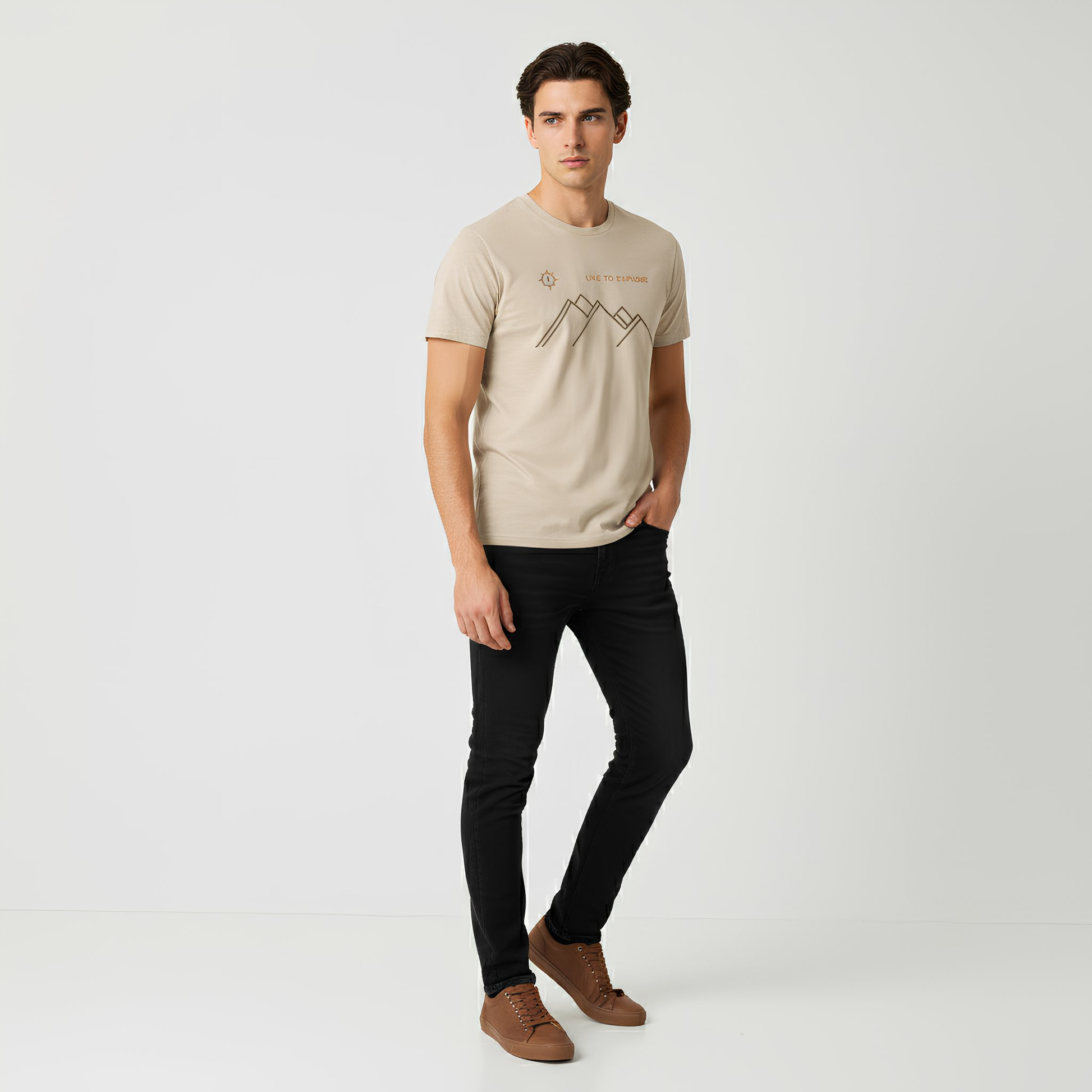 Adventure begins with a single step, and the NO&YO “Live to Explore” Tee is made for those who never stop seeking the next horizon. Featuring a minimalist mountain graphic and compass detail, this shirt embodies the spirit of explorers who live boldly and wander with purpose.