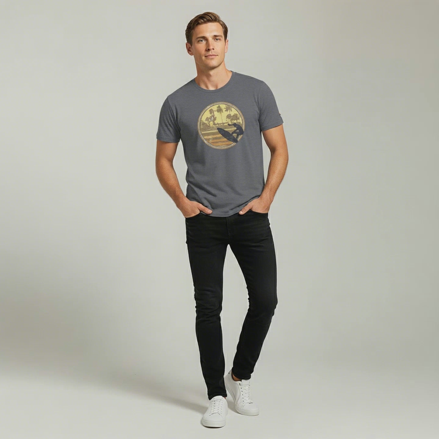 Catch the wave with the Premium Vintage Surfer Adventure Graphic Tee is perfect for any surfer or adventure enthusiast. As with every NO&YO t-shirt, it features a Discharge No-Feel Hand-Printed Design that ensures each shirt is unique. Additionally, this tee includes a tagless interior for maximum comfort without the annoyance of itchy tags.